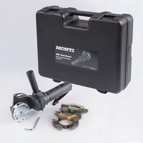 The MBX® -the one step tool that easily removes rust, corrosion, oxidation, adhesives, gaskets, layers of paint, undercoating, sealers, vinyl and dresses weld seams. The flexible-wire belts rotate in a patented housing, spinning outward with centrifugal force and working on a cushion of air.