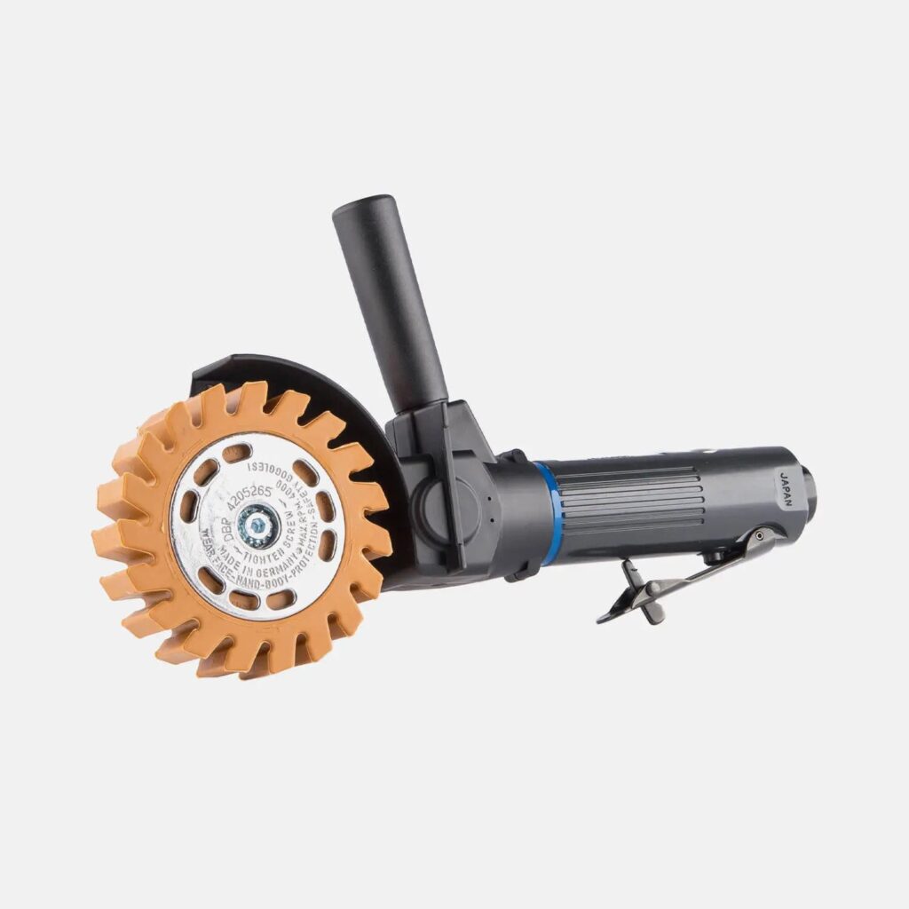 The unique eraser wheel is designed with noched “fingers” that grab the edge of the vinyl and peel it from the surface. Vinyl and adhesive residue are both removed without damaging paint or harming the underlying material. Mulitiple layers of vinyl – old or new – can be removed at one time in hot or cold weather6.